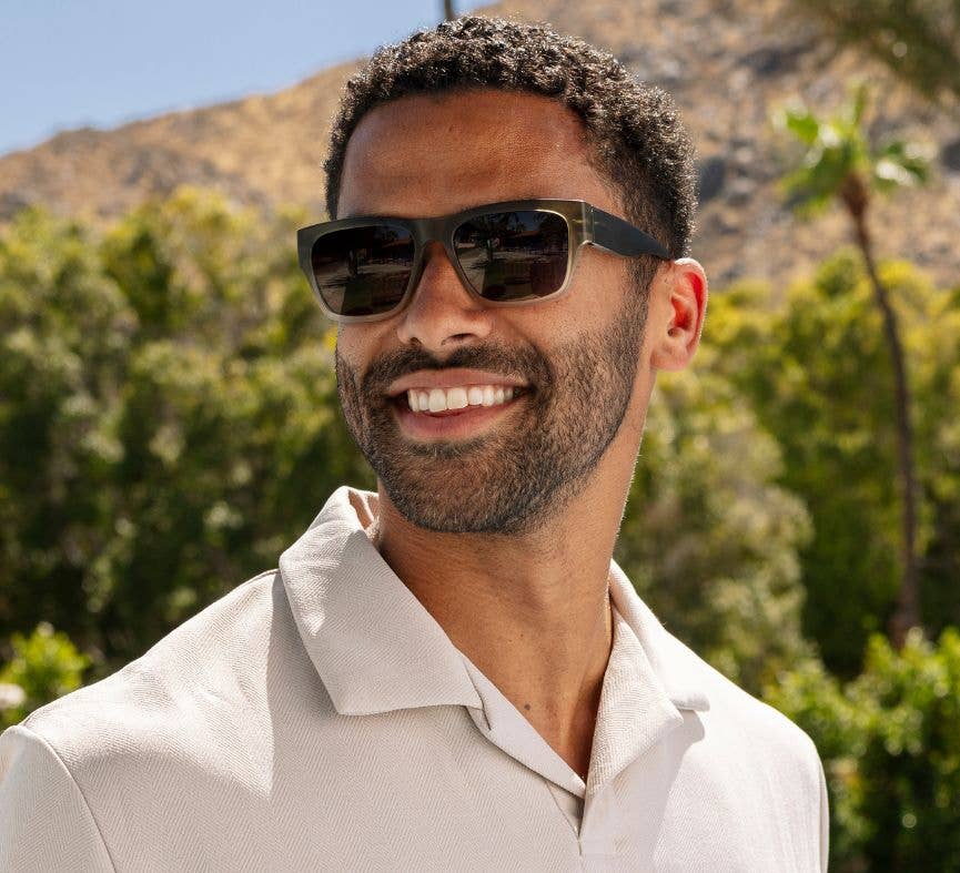 There’s no mistaking Hank—a style so striking you won’t want to take them off. The square frames and thick, blocky temples will immediately become a prominent part of your look. Go with a classic Black matte finish with mirrored lenses, or make a splashier statement in Green to Tan matte ombre fronts with smoke lenses.
